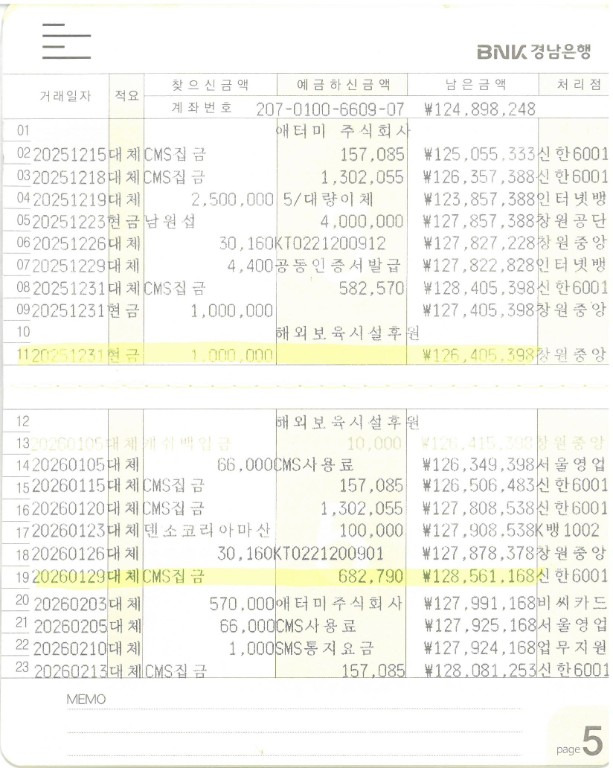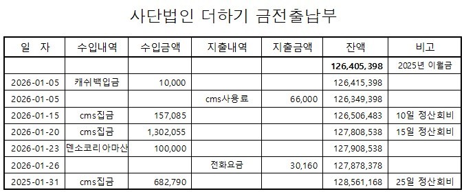 2026년 1월 금전출납 현황입니다.